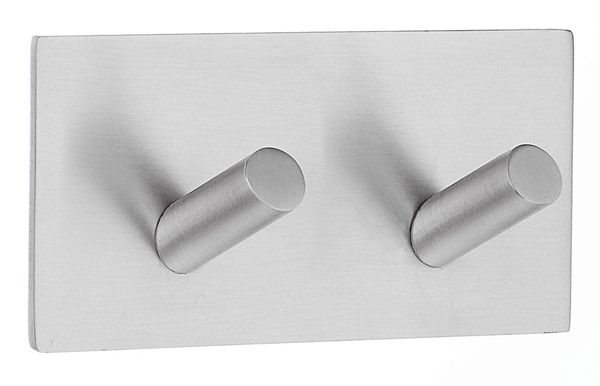 Dobbeltkrog Beslagsboden B1093, mat børstet rustfrit stål. Selvklæbende dobbeltkrog med klassisk enkelt design.