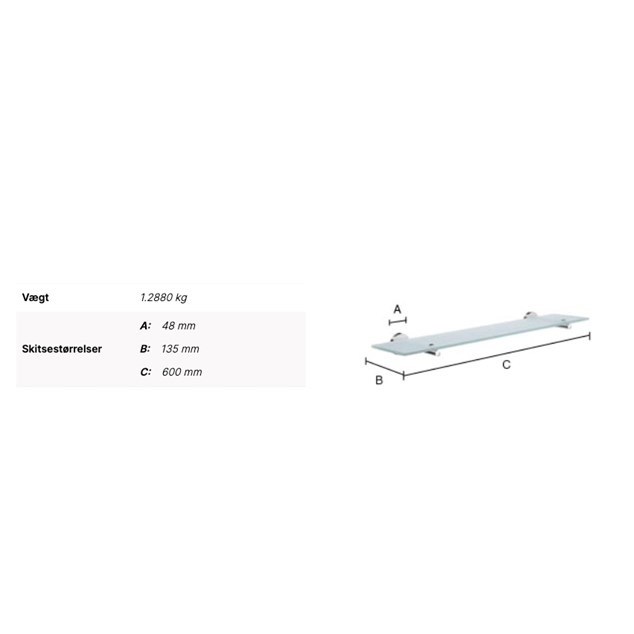 Badeværelseshylde Smedbo Home HK347 i matteret glas med holdere i poleret krom. Skjult montage,skruer.