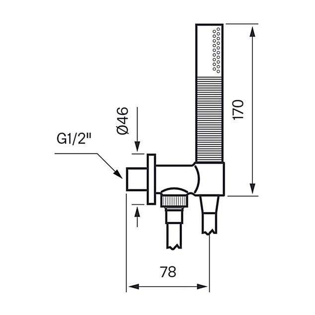 Brusesættet består af håndbruser, bruseslange (1500 mm) og vægtilslutning, i stilren design. Findes i flere farver.