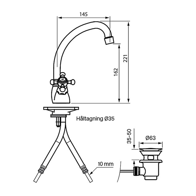 - Højde 221 mm.