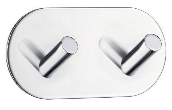 Dobbelkrog Beslagsboden BK1091, forkromet rustfri stål. Selvklæbende dobbeltkrog med blød afrundet design.