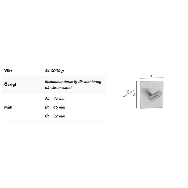 Monteringstips - sørg for, at overfladen er ordentligt rengjort, rengøringsmidlet må ikke indeholde olie. Lad overfladen tørre i 10 minutter. Fjern beskyttelsesfilmen, og hold produktet mod væggen i 10 sekunder. Lad produktet hærde i 24 timer, før brug.