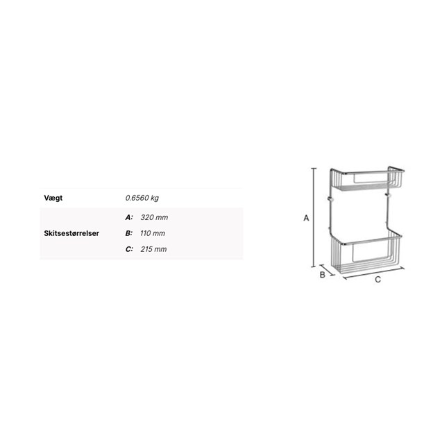 Smedbo Brusekurv Sideline DK1031 er en dobbelt brusekurv i poleret krom med dejlig plads til plejeartikler, som behøves i brusebadet.