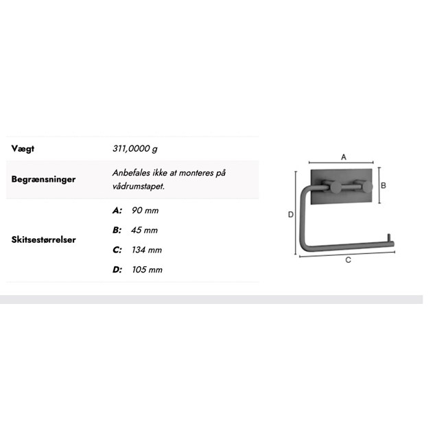 Toiletpapirholder Beslagboden B1098, mat børstet rustfrit stål. Selvklæbende toiletpapirholder med rektangulær design uden låg, som gør det let at skifte toiletrulle.