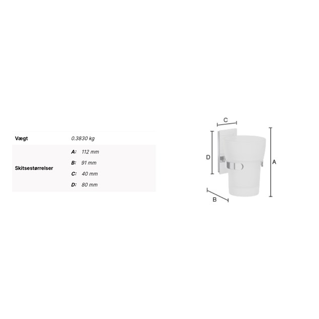 Tandkrus Smedbo Pool ZK343, matteret glas med holdere i poleret krrom. Skjult montage, skruer.