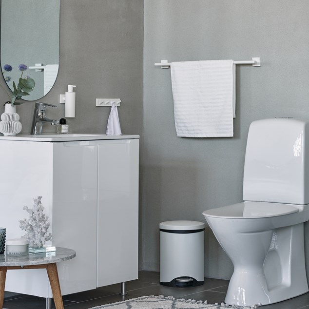 Smedbo Pedalspand. har ”softclose” hvilket indebærer at låget lukker langsomt.