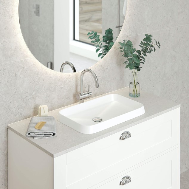 Håndvask INR Level er en stilfuld forsænket håndvask i mat porcelæn til Grand kommode med Level bordplade. Porcelæn er i bund og grund ler, der brændes i en ovn med en glaseret belægning. Resultatet er et ekstremt slidstærkt materiale, der holder det meste af tiden. Et ældgammelt håndværk, der selv i dag kendetegner et badeværelsesprodukt af høj kvalitet.