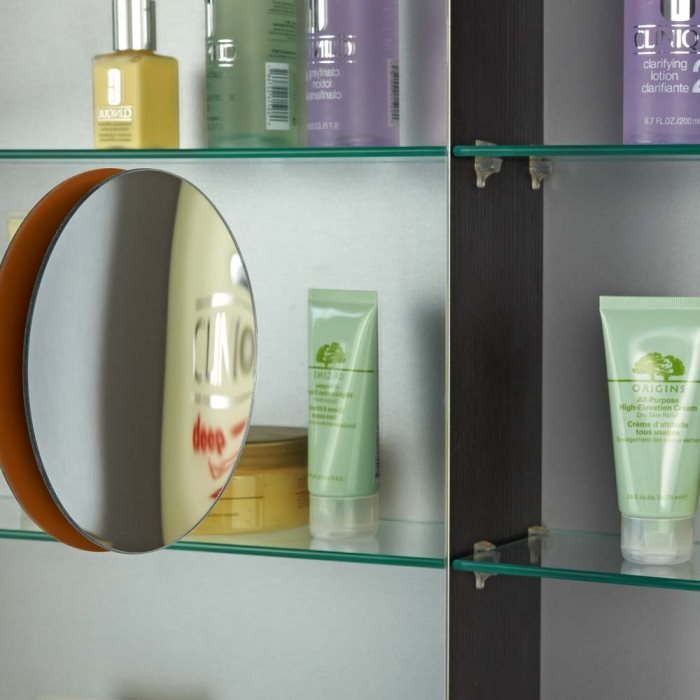 Forstørrelsesspejl der forstørrer x5. Praktisk ekstra spejl som f.eks passer på indersiden af spejlskabslågen.