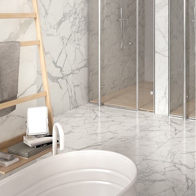 Et tidløst og klassisk marmor-look, der er meget svært at skelne fra det naturlige materiale. Kollektionen fås i flere størrelser og har lige skåret kanter, hvilket betyder, at du kan montere fliserne med minimale fuger (2 mm).