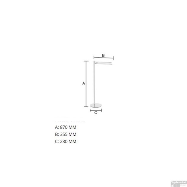 Håndklædestang Outline FK315 i poleret krom med to svingbare arme, der håndklæderne kan hænge og tørre efter badet. Fritstående design med rund gulvplade.