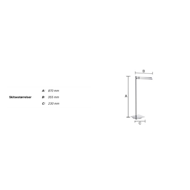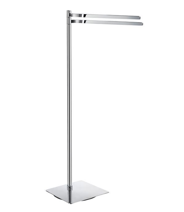 Håndklædestang Outline FK325 i poleret krom med to svingbare arme, der håndklæderne kan hænge og tørre efter badet. Fritstående design med kvadratisk gulvplade.